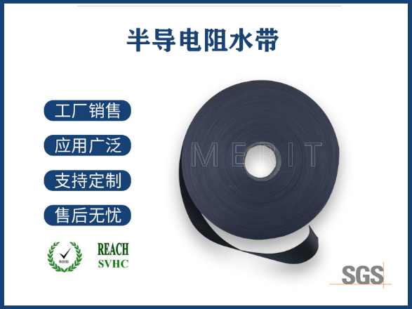 三、电气特性:半导电阻水带具有吸湿性强、膨胀率大、膨胀速率快的特点,产品电阻小,具有半导电特性,能有效缓冲、弱化电场强度,机械强度高,易于各种电缆绕包和纵包加工,产品耐热性好,瞬间耐温高,电缆可在瞬间高温时保持性能稳定。